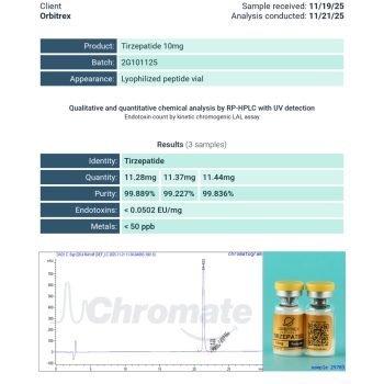 Whether you are a researcher working independently or part of a larger institution, 2G-TZ 10mg offers the purity, documentation, and logistical support you need. With Orbitrex Peptides, you can rest assured that every product is handled with the utmost care, tested with uncompromising standards, and delivered with efficiency in mind.