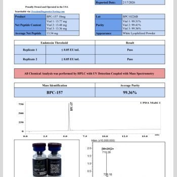 Every vial of BPC-157 10mg is manufactured under strict quality controls and verified by independent 3rd-Party Certificates of Analysis (COAs). This ensures transparency and allows laboratories to confirm product authenticity and consistency. With 99%+ verified purity, this peptide minimizes variability and provides researchers with confidence in their studies.