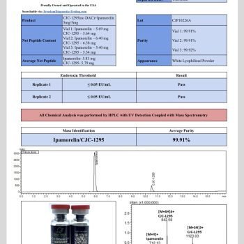 Each vial undergoes rigorous 3rd-Party Certificates of Analysis (COAs) to confirm 99%+ purity, ensuring scientific accuracy and consistent results. Packaged securely in sterile vials, this peptide blend is delivered in lyophilized powder form for long-term stability and ease of use.