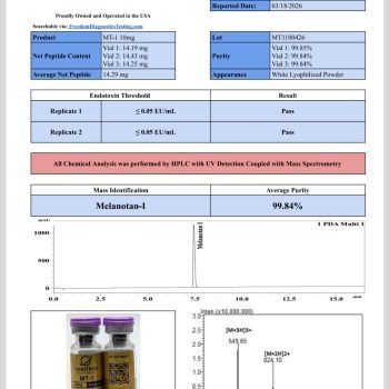 At Orbitrex Peptides, we specialize in delivering precision, purity, and research reliability. Our MT-1 (Melanotan-1) peptide is manufactured to the highest standards and independently verified, ensuring researchers can depend on accurate and reproducible results.