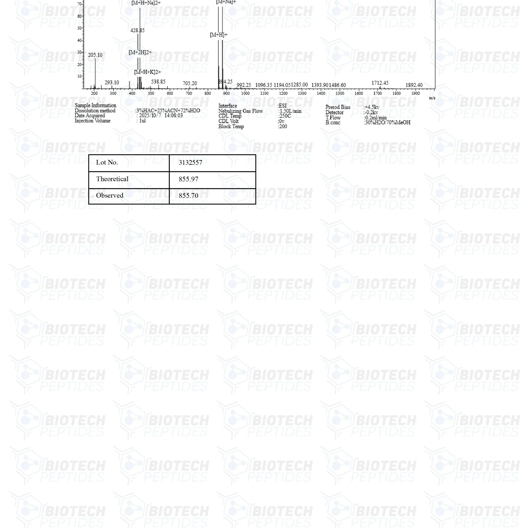 Researchers have noted that the acetylation of the peptide into N-Acetyl Semax appears to reduce the affinity of other ions, such as Cu++, to its N-terminus.[1] Acetylation may contribute to an increase in the peptide’s resistance to enzymatic degradation, potentially leading to an extended half-life observed in experimental models. Increased resistance to degradation might mean that the peptide potentially remains active for a longer period, which may enhance its stability./p>