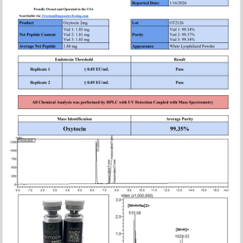 Our Oxytocin undergoes rigorous quality control procedures and independent 3rd-party verification, guaranteeing 99%+ purity for every vial. This commitment to transparency ensures that researchers can move forward with confidence, knowing they are working with a peptide blend that has been tested, validated, and proven to meet stringent specifications.