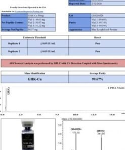 - Verification: Qualitative and quantitative chemical analysis by Reverse-phase HPLC with UV Detection. Endotoxicology verified using kinetic chromogenic LAL assay.