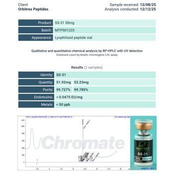 Whether you are a researcher working independently or part of a larger institution, SS-31 offers the purity, documentation, and logistical support you need. With Orbitrex Peptides, you can rest assured that every product is handled with the utmost care, tested with uncompromising standards, and delivered with efficiency in mind.