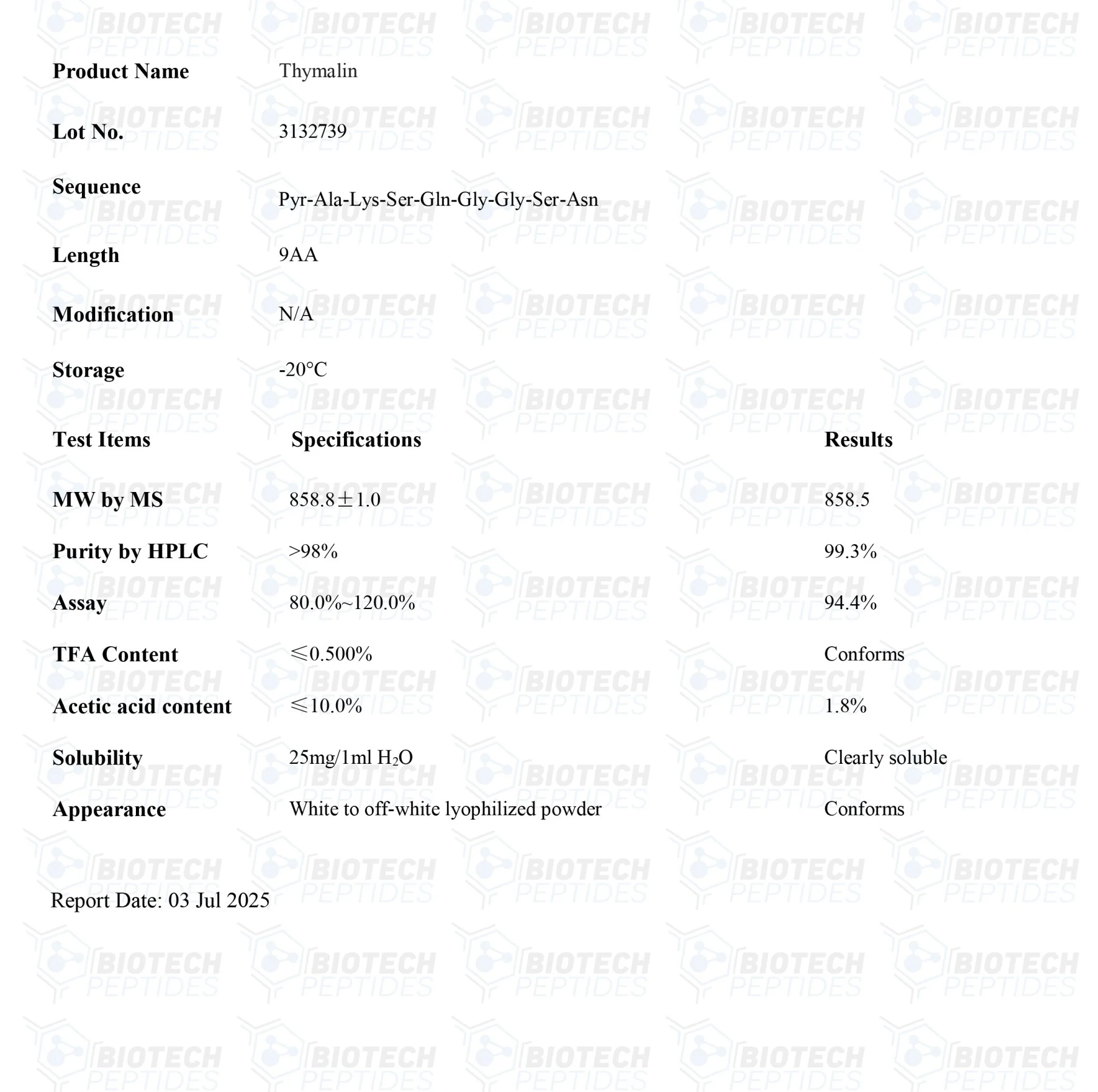 Thymalin Peptide For Sale