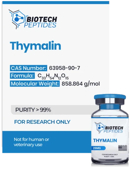Thymalin, sometimes referred to as Thymalin Alpha-1, is the synthetic variant of the endogenous Thymulin, which was first isolated from the thymus in 1977. The endogenously produced Thymalin has been researched for its potential in a wide landscape of research areas, with its influence speculated to extend to regulatory action on inflammation, mitigation of pain perception, neuroprotective action, and immune function support. Early studies have suggested that Thymalin and other thymus and pineal gland secretions may also support cell longevity.