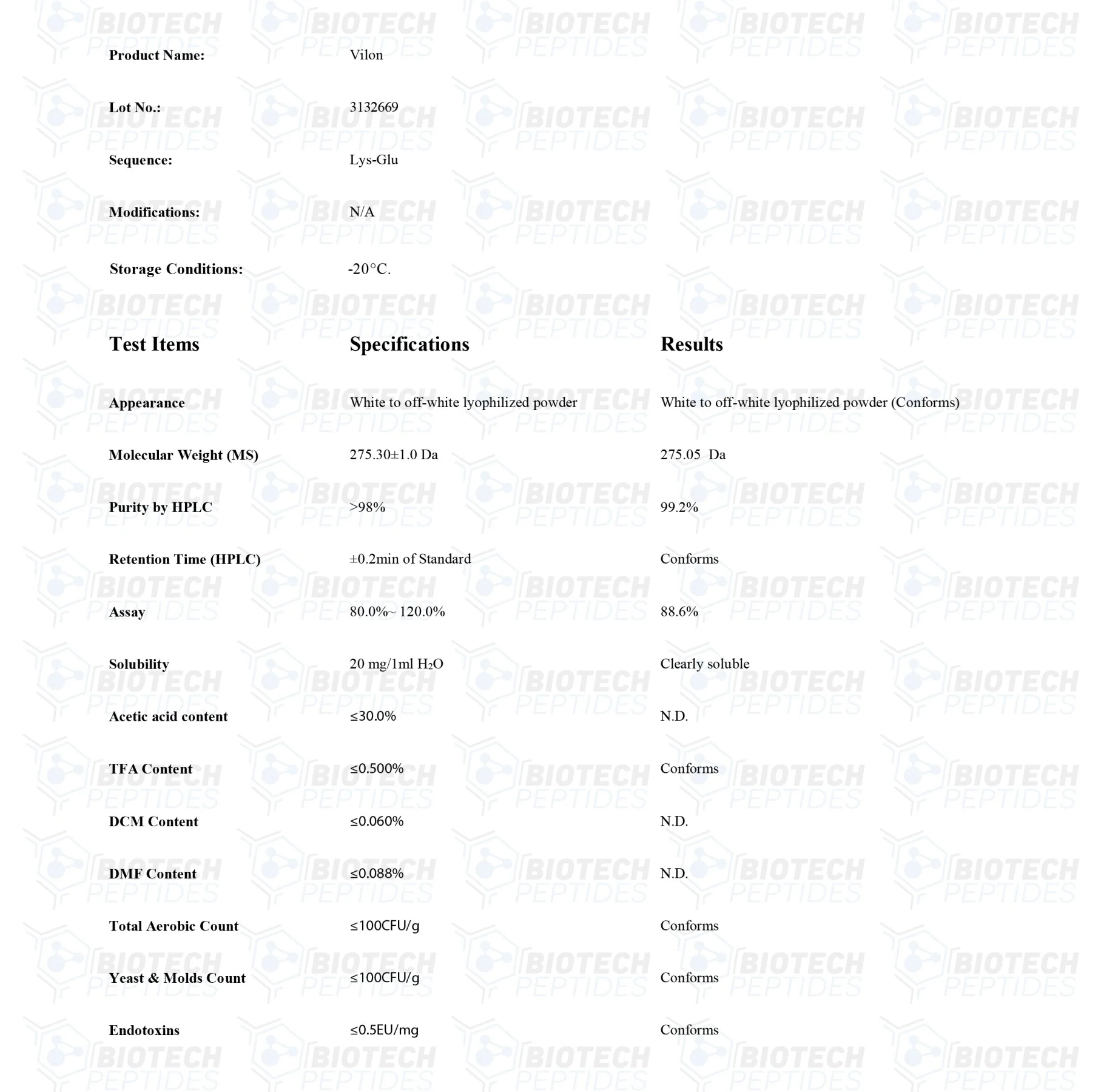 Vilon (or Lyslglutamic Acid) is a peptide with apparent immunomodulatory and anti-aging bioregulation potential. It is a short peptide with just two amino acids in length. Scientific research suggests it may potentially act to regulate the vascular system and encourage hemostasis. Its functions may be more widespread, with studies indicating its possible influence in reducing the prevalence and growth of spontaneous tumors. Advocate researchers like Dr. Vladimir Anisimov believe that the peptide may become more widespread in contemporary research within the context of geroprotection.